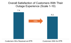 One theme was universal: customers care deeply about getting an estimate, quickly, even if it later changes. Several utilities emphasized that the absence of an ETR often hurts customer satisfaction more than an estimate that turns out to be conservative, an observation backed up by data from Chartwell’s Tranzact post-event evaluation study, shown in the graph below.