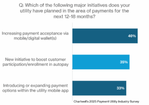 Over one-third of utilities are planning major initiatives to improve autopay usage, according to Chartwell’s recent Payment Utility Industry Survey.